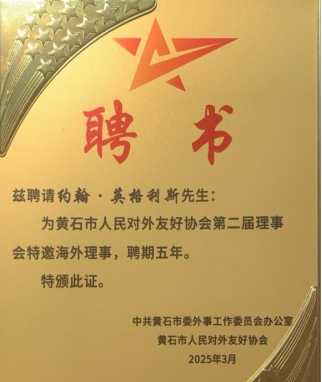 访问期间,党委书记张方胜看望了John Inglis一行,对他们的到来表示热烈欢迎,向John Inglis颁发了黄石市对外友好协会授予的特邀海外理事聘书,并对John Inglis在促进两校交流合作上做出的卓越贡献表示感谢,在促进文化交流与传播方面展现出的非凡热情与责任感表示赞赏。张方胜表示,正是John Inglis对中国文化的深刻理解以及对黄石这座城市的热爱,使他成了连接尼尔森市和黄石市、尼尔森马尔伯勒理工学院与76net必赢官网友谊的重要纽带。