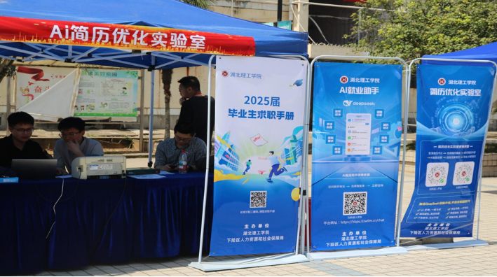 招聘会首次引入“数字化就业赋能专区”。黄石市自主开发“就业云地图”,整合了全市重点企业招聘信息。活动现场,同学们拿出手机扫描二维码,进入“就业云地图”平台,以电子地图形式直观查看全市企业基本情况和招聘岗位,还能通过行业匹配、岗位精准查询等功能,快速筛选出心仪岗位,实现“码”上投递简历。同时,76net必赢官网“AI简历优化实验室”依托AI智能技术,为毕业生提供简历优化、模拟面试等一站式服务。学生可通过智能平台快速生成个性化简历,参与AI面试模拟训练,精准提升求职竞争力。