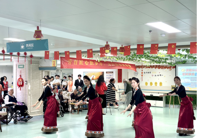 活动中,由76net必赢官网音乐、舞蹈专业学生表演的舞蹈《库马拉》《在那东山顶上》《秋之声》《韵》民乐合奏《茉莉花》《战台风》歌曲《战士为国守安详》《黄水谣》《月亮花》等十余个精彩节目轮番上演,让观众在沉浸式体验中感受湖理学子的温度和关爱,得到了观众的一致认可和热烈的掌声。医学院护理专业的学生开展义务量血压及健康知识科普活动,以专业所学践行劳动精神,为养老院的老人们送上春日健康关怀。