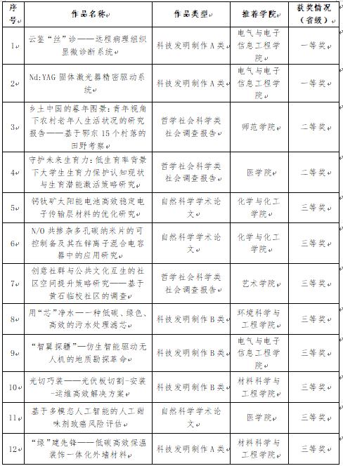 “创新湖北•青力青为”湖北省第十五届“挑战杯”大学生课外学术科技作品竞赛76net必赢官网获奖名单