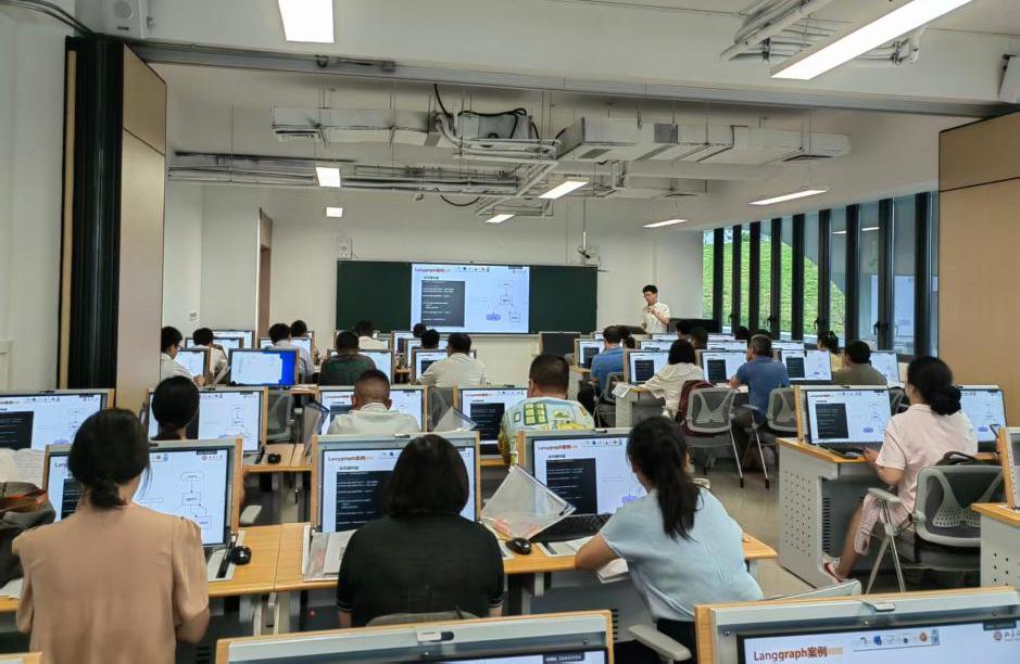 此次培训通过专题讲座+实战演练的形式,聚焦AI技术在教育场景的落地应用,为期两天的课程包括文心飞桨平台技术体系及课程建设实践、华为昇腾知识体系简介及课程建设实践、具身智能的核心范式及Deepseek教学应用四个模块。参训教师系统学习了AI工具使用与教学转化方法,涉及智能备课、基金申报书撰写、机器人编程控制、模型训练与推理等实操内容,全方位提升教师的技术应用与教学转化能力。