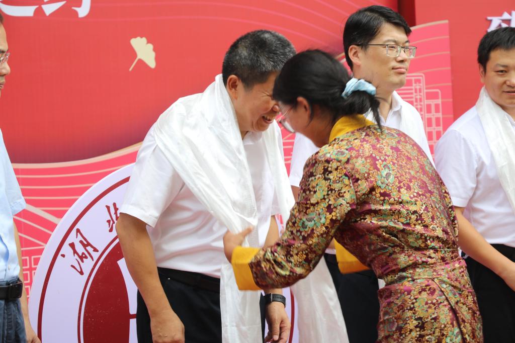 在此次迎新中,还出现了跨越山河的“同名”之缘,名为“李鑫”的有5位,这独特的缘分也为入学增添了不少趣味。同时,新生群体也展现出“民族一家亲”的多彩面貌,土家族、苗族、壮族、藏族等少数民族新生汇聚于此,不同民族文化将在校园里交融碰撞,绽放独特光彩。其中有两位同叫“普布卓玛”的藏族女孩,她们一同被录取到师范学院的小学教育专业。校党委常委刘兰青为这7位同学送上入学礼包!普布卓玛同学也为张方胜书记、胡国珍校长、涂立桥副校长、刘兰青常委送上了代表纯洁、诚心与吉祥的哈达。
