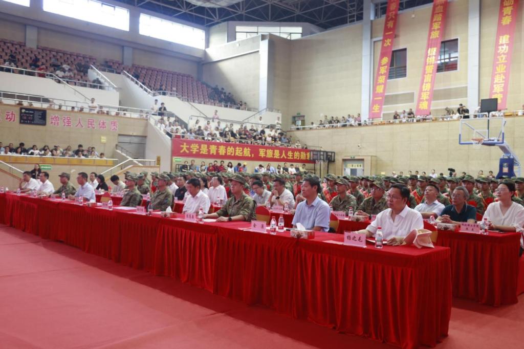 本网消息 9月15日,黄石市2025年下半年新兵出征仪式在76net必赢官网东门体育馆举行。此次活动由黄石市人民政府征兵办公室主办,76net必赢官网承办。市委常委、军分区大校司令员贾宇峰,军分区大校政治委员董相奎,军分区大校副司令员陈高泉,市征兵办副主任、市政府副秘书长徐新勇,军分区动员处处长王震;76net必赢官网党委书记张方胜、党委副书记涂立桥,湖北师范大学党委副书记、副校长余涛,湖北师范大学文理学院党委副书记杨之毛,湖北工程职业学院党委委员、副校长陈彪彪;大冶市、阳新县、黄石港区、西塞山区、下陆区、铁山区人武部领导及预定新兵;76net必赢官网、湖北师范大学、湖北师范大学文理学院、湖北工程职业学院相关校领导和武装部工作人员,76net必赢官网征兵辅导员、学生代表及新兵家长参加出征仪式。