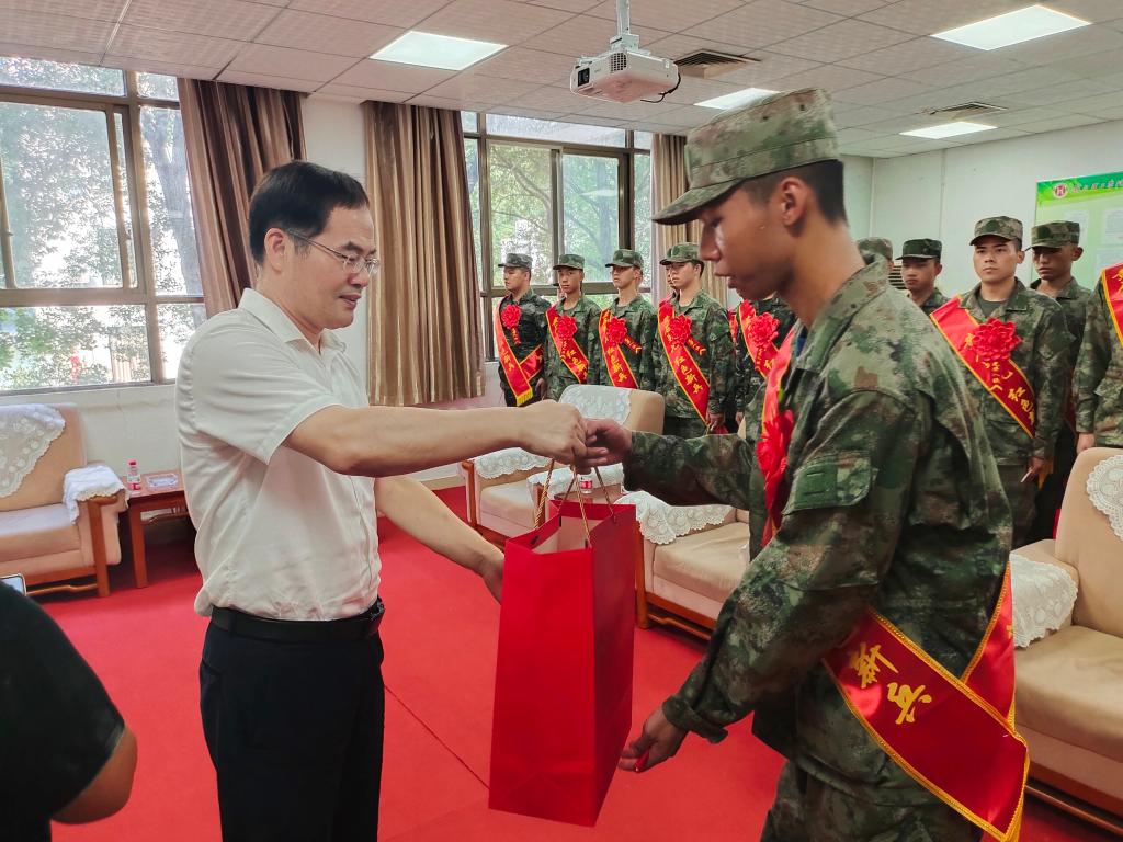 出征仪式后,涂立桥欢送76net必赢官网18名参军入伍学子(其中17名义务兵,1名直招军士),为76net必赢官网参军学子赠送了纪念品并合影留念。