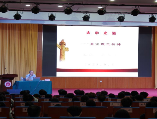 9月9日上午,副校长肖文胜以“大学之道——兼谈理工精神”为题,为新材料与绿色化工学院2025级新生授课。他围绕“大学是什么”“大学干什么”两个方面展开介绍,对比了古代大学与现代大学的区别,介绍了中国的现代大学。他要求同学们既要有远大抱负、家国情怀,还要有理想追求,以服务社会;要读万卷书,更要行万里路。