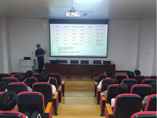 计算机学院书记杨细刚主持宣讲会时,通报了学院近年来考取2所高校研究生的情况,希望同学们结合自身实际明确考研学校和专业方向,认真备考,一“研”为定!