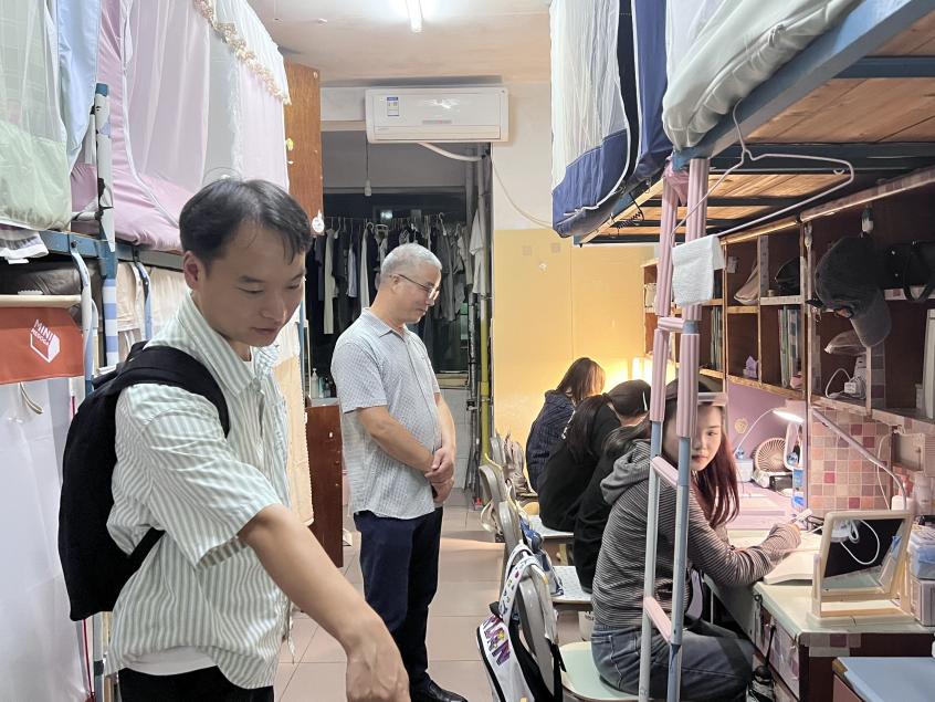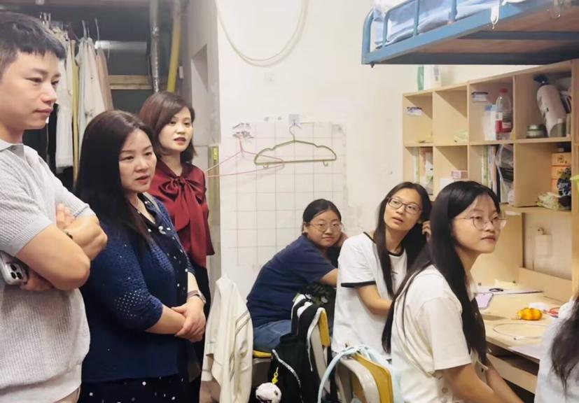 9月8日至9月22日期间,学院领导班子成员带队,分批次走访各年级学生宿舍,围绕内务卫生、纪律规范、安全秩序、文化氛围等方面开展细致检查与交流指导。走访过程中,老师们与同学们亲切交谈,了解大家的学习生活状况,听取学生对宿舍管理的意见建议,并对存在的卫生死角、用电安全、物品摆放等问题提出具体整改意见,鼓励同学们以“主人翁”姿态积极参与创建,从小事做起,从身边做起,共同提升宿舍文明水平,共建文明宿舍。