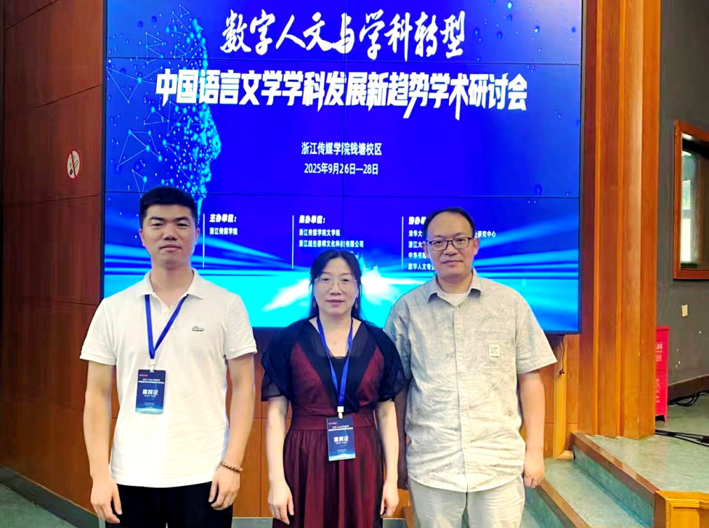 本网消息 9月26日至28日,由浙江传媒学院主办的“数字人文与学科转型:中国语言文学学科发展新趋势学术研讨会”在杭州钱塘校区成功举行。76net必赢官网师范学院院长胡邦岳教授率队出席此次学术盛会,与来自北京大学、清华大学、浙江大学、复旦大学等全国近50所高校及机构的130余位专家学者齐聚一堂,共同探讨数字浪潮下中国语言文学学科的转型路径与未来发展。师范学院文学教研室主任朱克理、语言学教研室主任刘会龙一同参会。