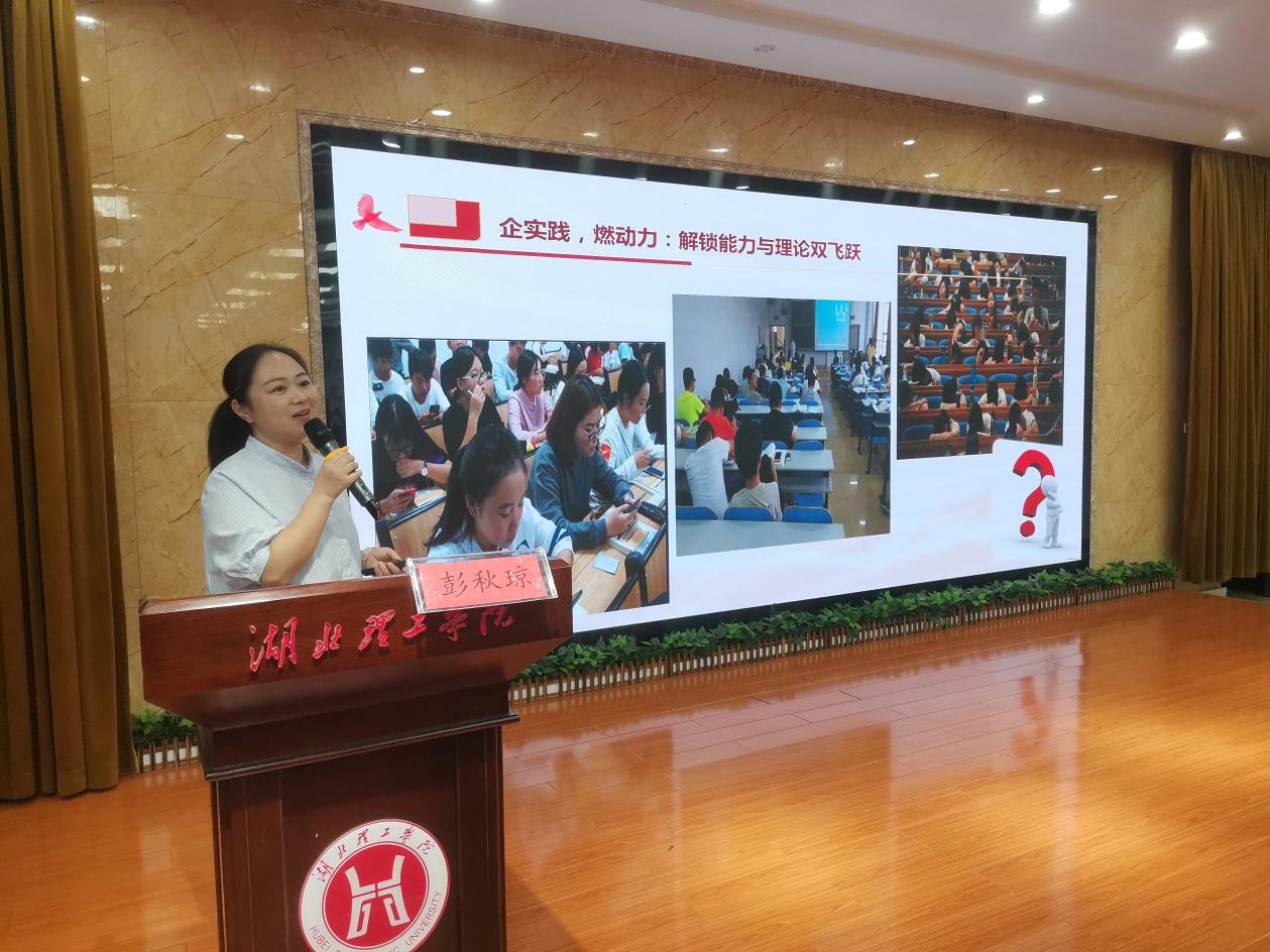 彭秋琼老师围绕教学、科研与社会服务实践,用真实案例与深刻感悟传递新时代教师的责任与担当。她长期为黄石本地企事业单位提供各类技术服务,将行业经验转化为教学“活素材”。她认为,企业实践不是“额外任务”,而是反哺教学的“动力源泉”。将企业真实项目引入课堂教学,以及建立产学研实习基地让学生进入企业实践,让学生在解决实际问题中实现“能力与理论双飞跃”,同时结合多次获评“优秀班主任”“优秀班主任标兵”“十佳师德标兵”等经历,彭秋琼强调“教师的一言一行是学生精神世界的无声滋养”。作为学科竞赛指导教师,她用“手把手教方法、心贴心传经验”的态度,让学生在竞赛中实现能力与品格的双重提升。“纸上得来终觉浅,绝知此事要躬行”,彭秋琼以这句古语总结从教感悟。她认为,好老师既要“守初心”更要“求创新”,在教学方法、实践路径上持续突破,让每一堂课都有温度,每一次指导都有力量。