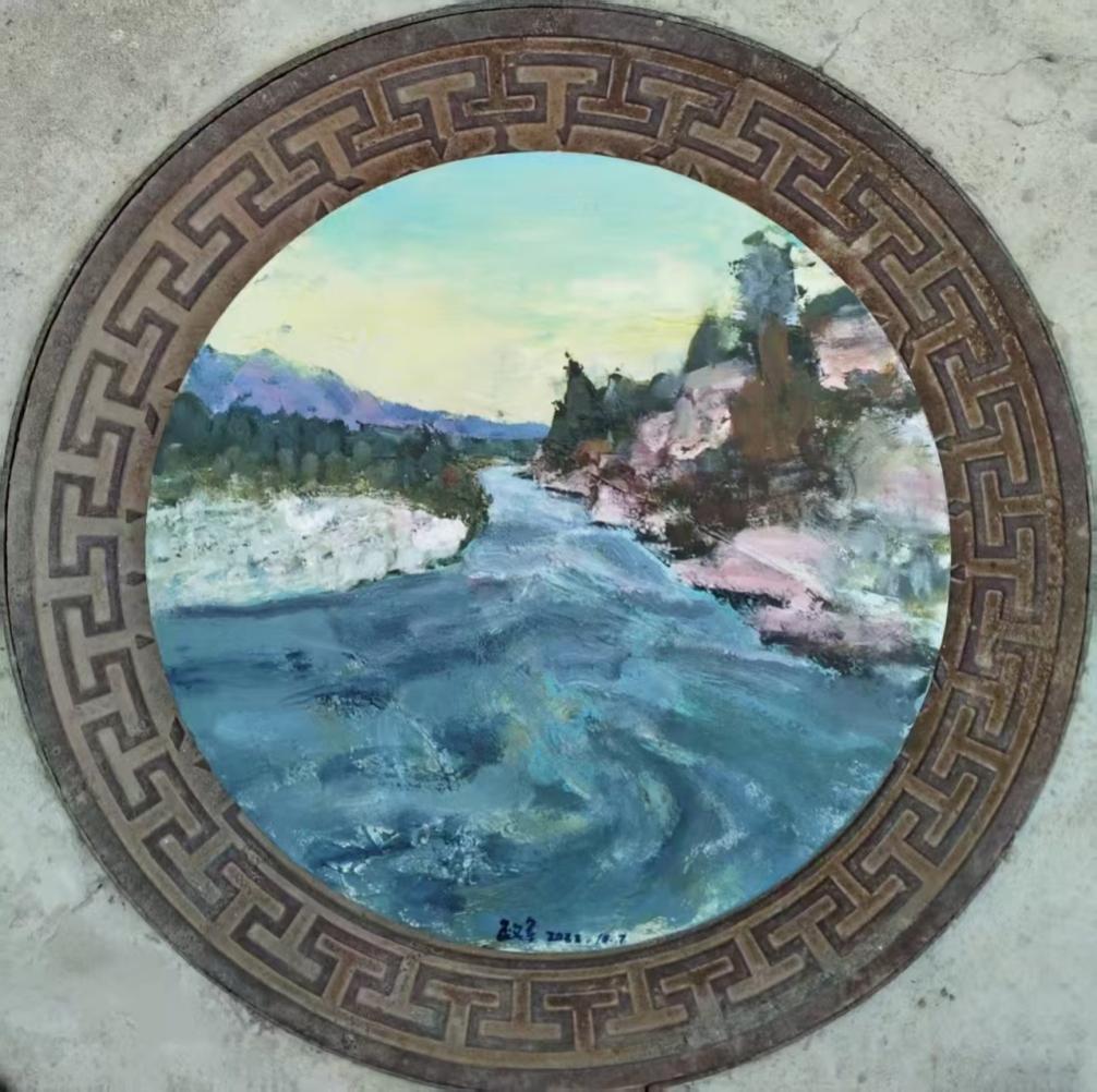 陈政军老师展示其现场绘画作品