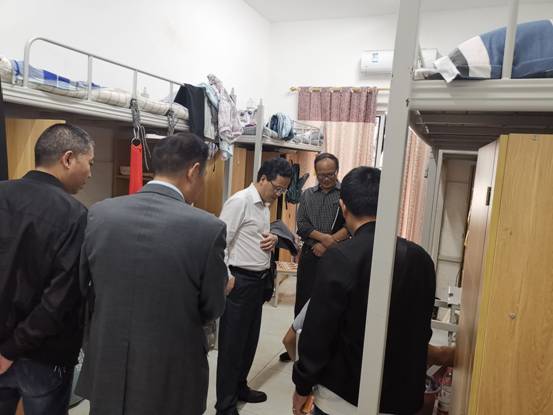 胡见勇一行先后来学生食堂、超市和宿舍,详细查看了各处内外环境。针对食堂存在的问题,胡见勇提出了三点建议,一是要定期检查食堂菜品新鲜程度;二是定期检查食堂的环境卫生,保证食堂卫生干净;三是建议派出学习小组到本部食堂进行学习观摩。谢希峰主任则对学院食堂工作人员以及食堂经营模式提出了要求,食堂的经营应加强标准化,达到A级水平。工作人员应当统一工作服,统一佩戴口罩、工作帽等。