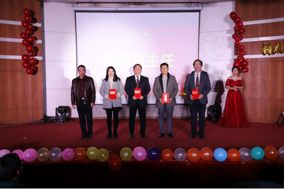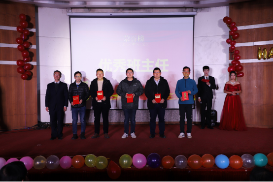学院对表现突出的师生进行年度表彰。徐庆华院长为获得机电学院标兵班主任奖项张北平、李士民、华文林、付锐平四位老师颁奖。
