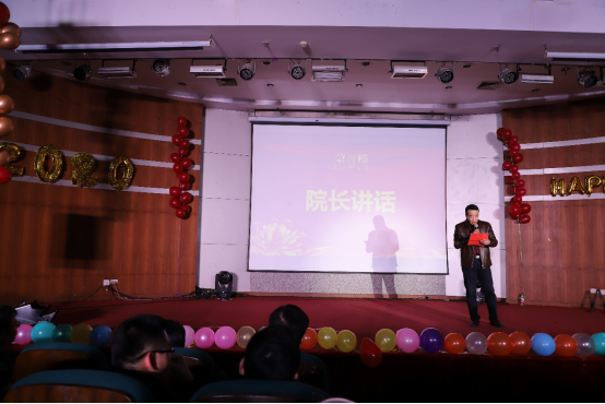 徐庆华院长为晚会致开幕词,他向全体师生表示衷心的祝福,并表达了新年祝贺,对全院师生在2019年所做的工作给予了充分肯定,对2020年的工作提出了展望。这一年,机电工程学院的光荣簿上又添了新的佳绩,这些成绩离不开校党委的正确领导,离不开全体机电人的坚守与拼搏,离不开学院各位老师的辛苦工作。同时他勉励所有机电人要不忘初心,砥砺前行。