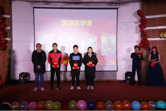 陶晶副院长为国家奖学金获得者刘梦琼、刘启全、王仁杰、陈硕四位同学颁奖
