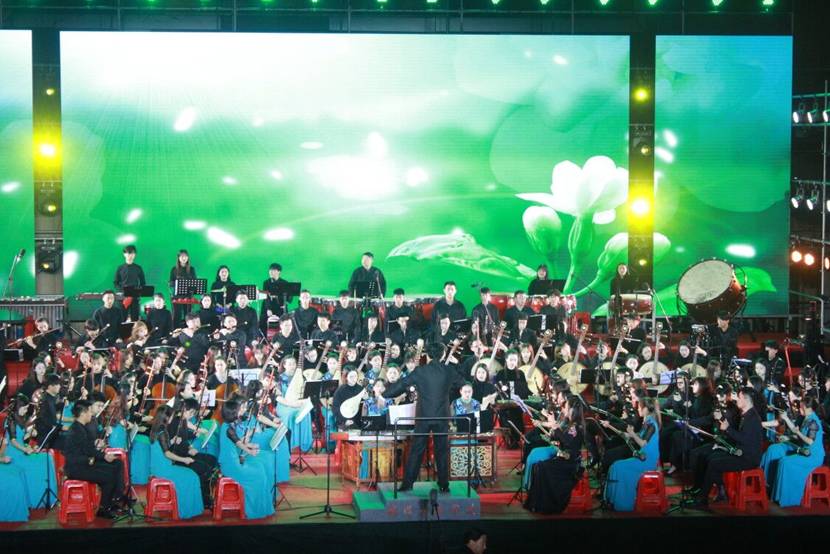 民族管弦乐合奏《庆典序曲》是赵季平先生为迎接国庆四十周年创作的。乐曲以热烈快速的跑句和唢呐、锣鼓的齐鸣,构画出一幅节日庆典的场面。《茉莉花》将不同音乐语言、情感表达分别以最适合演奏表现的乐器一一呈现在听众的面前,突显出民族乐器的特色、多变的音色和不同演奏风格。
