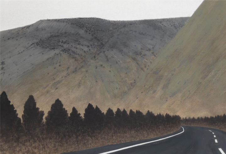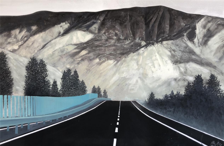 《路路相连之一》(一路向西之一)纸本水粉100.7×150.5cm 2019年
