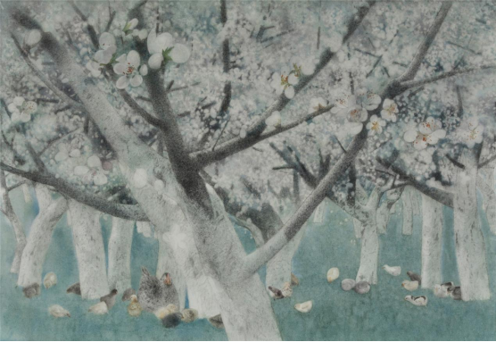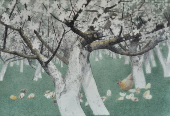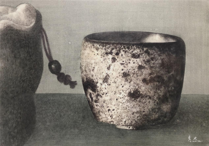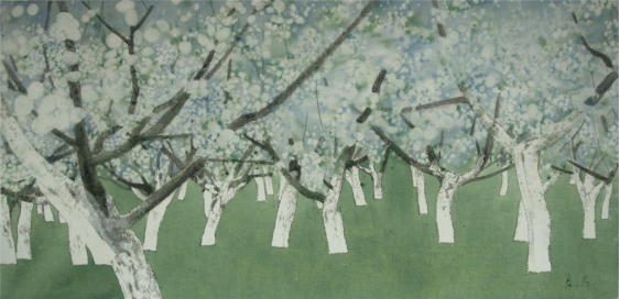 有谁知道艺术家的追求是苦苦的,于绝绝处。面对每一个景物、每一幅作品,他们常常是低下头寻找被拒绝的尊严。在无数的失败中发现自己早已伤心满地。那些绝绝的士者们像石头一样顽强地生活着,像石头一样他们的生命不会终结,因为他顽强的没有任何炫耀的活着。他一次次摊开疲惫的手,但画面中传达出的生命的体征依然是鲜活的,饶秀光就是这样的一个坚守者。无数的失败和绝绝的坚守已使他不再迷恋隔岸相望的惆怅,不再沉迷于一幅作品的成败,多年的坚守已使他心向宁静。已过不惑之年的他早已洗尽铅华,他深知,有多少美好必有多少逝去。他把自己的时间几乎全部用在了对绘画的追求上,他的作品成为他心灵最好的遮风避雨处。