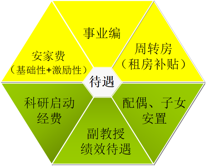 1.纳入省属事业单位编制管理,享受国家规定正常工资、福利、社保、公积金等待遇。入职五年内,中级及以下职称者享受副教授(专技7级)履职绩效工资待遇。 2.安家费按学科类别执行:理、工、医学类25万元;人文社科类20万元; 3.提供周转房一套(简装,约100平米);或不需提供周转住房的,学校给予租房补贴1500元/月(5年)。如夫妻双方均为博士研究生,学校只提供周转房源一套,并分别增加2万元的安家费。 4.享受黄石市人才引进相关待遇。 5.学校对其配偶可按相关规定安置工作。 |