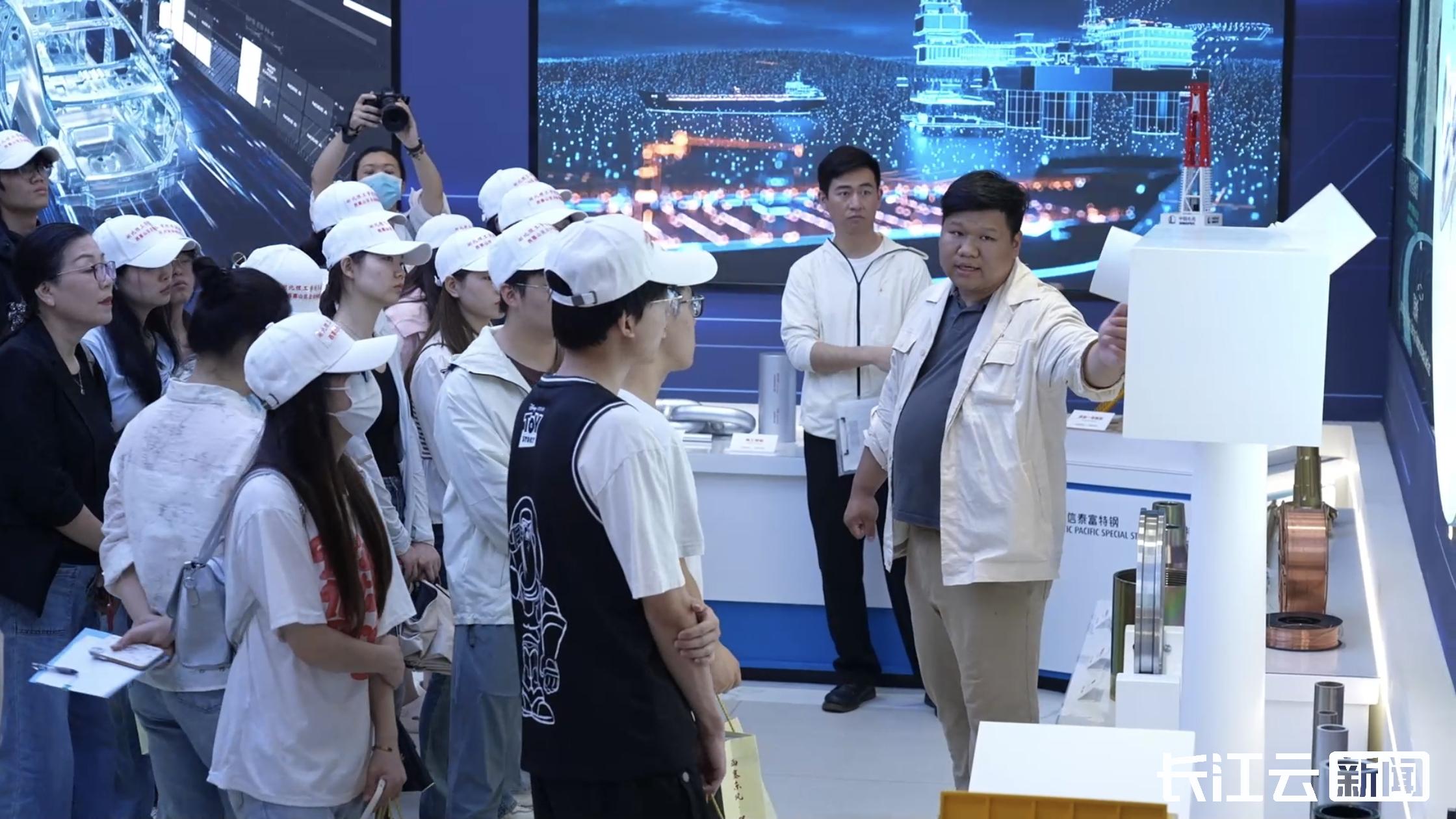 在大冶特钢科技展厅,学子们跟随工作人员参观了丰富的展品,从汽车用钢到航天材料,实地了解大冶特钢发展历程和科技创新成果,见识了世界先进水平的工艺技术和装备。